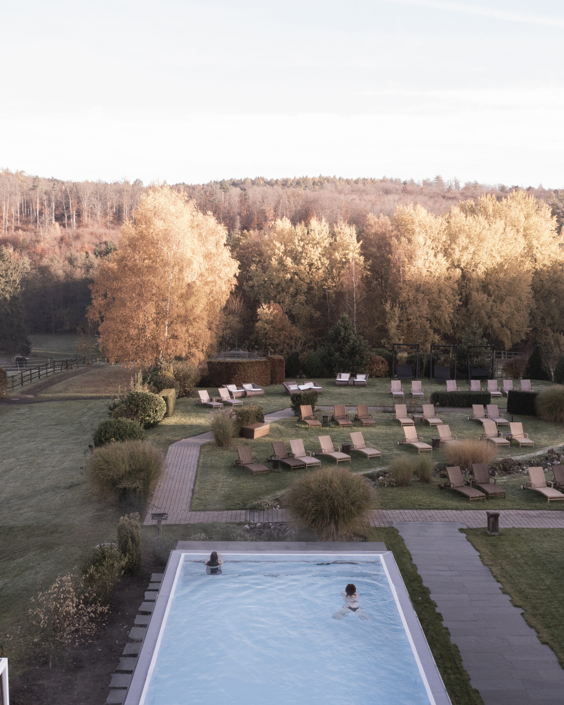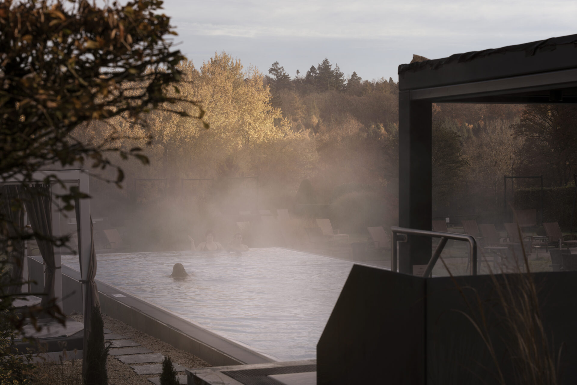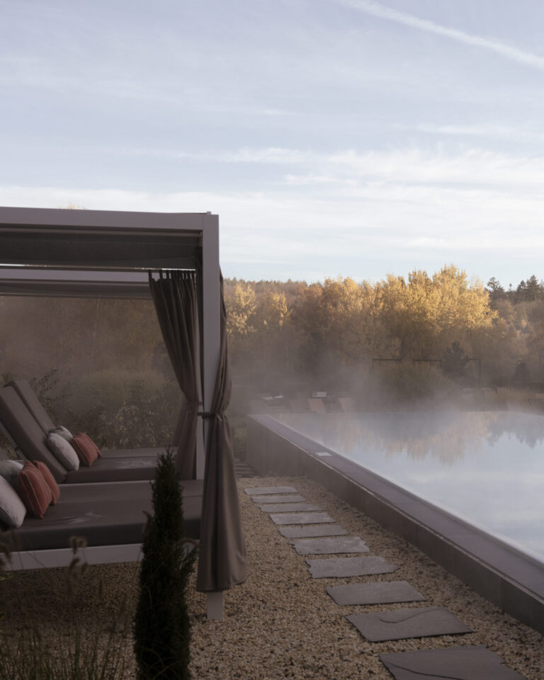 Unser neuer Außenpool erwartet Sie. Seit Mai gehört zu unserem 4-Sterne-Superior-Komfort ein Highlight, das Sie auch im Herbst genießen können: unser neuer, ganzjährig beheizter Außenpool. Stellen Sie sich vor: Die klare Herbstluft prickelt auf der Haut, während Sie im wohlig warmen Wasser (28 °C) treiben. Über Ihnen ein strahlend blauer Himmel – oder romantisch leichte Nebelschwaden am Morgen. Die Farben der Natur leuchten rundum in warmen Gold- und Rottönen, und Sie gleiten schwerelos durchs Wasser – pure Entspannung mit Panoramablick. Ob nach einem Ausflug, zum Aufwachen am Morgen oder für den perfekten Ausklang Ihres Wellnesstages – unser Außenpool schenkt Ihnen zu jeder Jahreszeit ein Stück Urlaubsgefühl unter freiem Himmel.