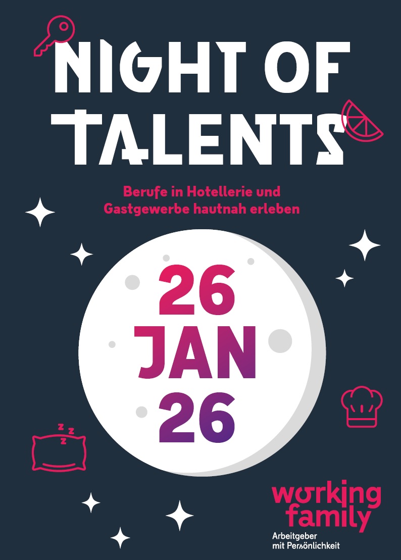 Die „Night of Talents“ ist eine Initiative der WorkingFamily einem Verbund aus familiengeführten und engagierten Betrieben in Rheinland-Pfalz. Mehr zur Initiative und weitere teilnehmende Häuser finden Sie hier.
